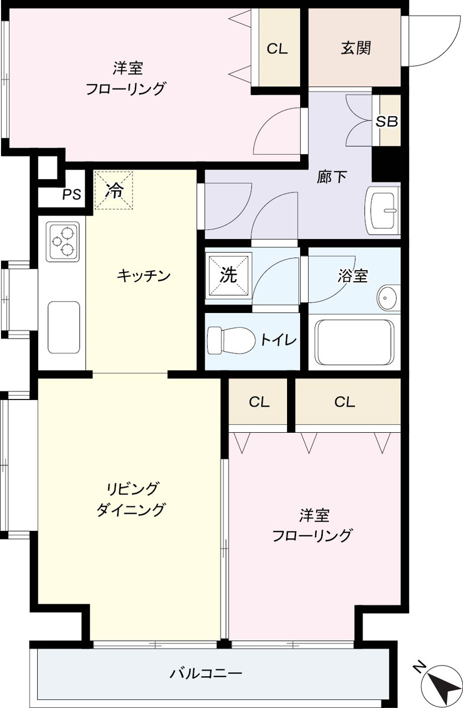広々使える2LDK角部屋!