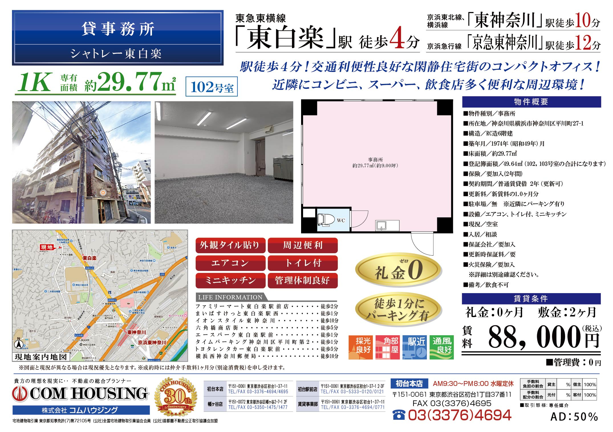 コムハウジング(賃貸) > 株式会社コムハウジングのスタッフブログ記事一覧 > [新着物件]シャトレー東白楽102(貸事務所)