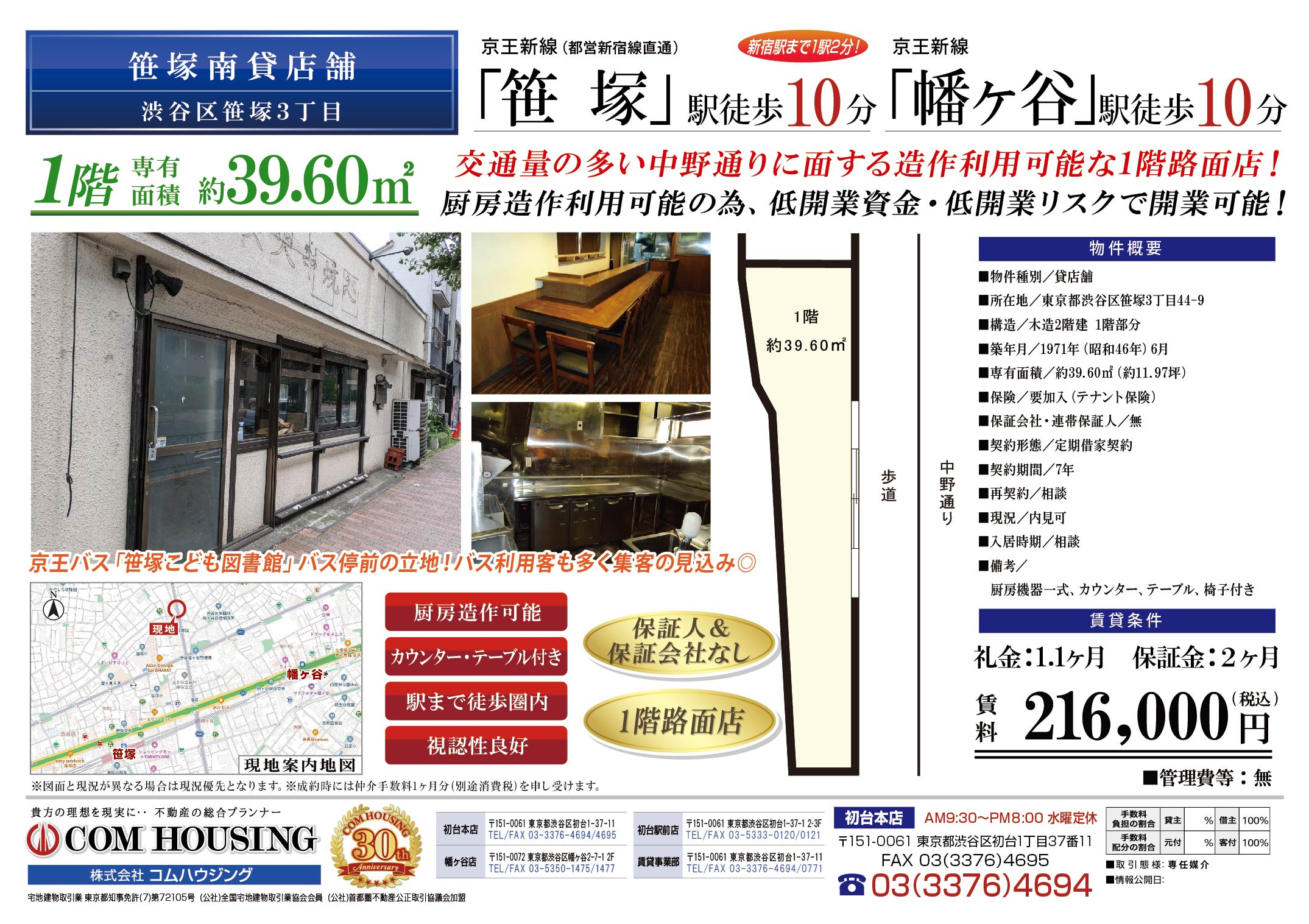 コムハウジング(賃貸) > 株式会社コムハウジングのスタッフブログ記事一覧 > [新着物件]渋谷区笹塚3丁目路面店舗(中野通り沿い)