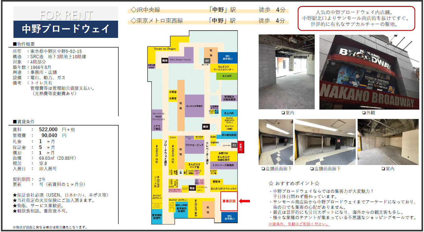 コムハウジング(賃貸) > 株式会社コムハウジングのスタッフブログ記事一覧 > [新着物件]中野ブロードウェイ貸店舗・事務所