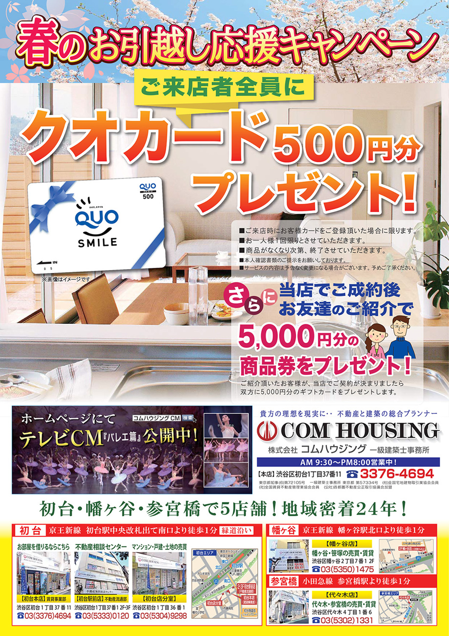 コムハウジング(賃貸) > 株式会社コムハウジングのスタッフブログ記事一覧 > 春のお引越し応援キャンペーン中です!